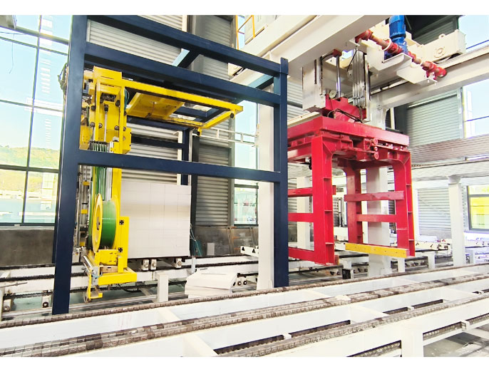 產品分揀和包裝工段:掰扳機、成品夾具、砌塊/板材輸送線等。完成蒸養出釜的坯體經掰分后由包裝輸送設備進行分揀、碼垛、打包并運送至堆場。
